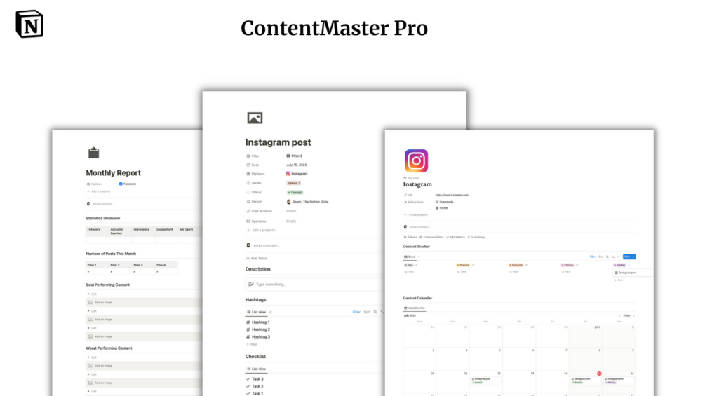ContentMaster Pro is a comprehensive Notion-based system designed to empower small businesses, content creators, and social media managers in optimizing their social media presence.